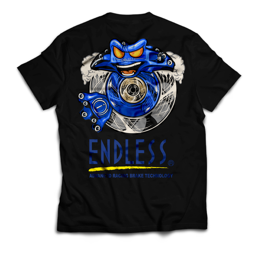 เสื้อตัวนี้หยิบจิตวิญญาณของ ENDLESS—ผู้เชี่ยวชาญเบรกสายแข่งจากญี่ปุ่น—มาทำเป็นสตรีทแวร์ ใส่หน้าอกเล็ก ๆ ให้สุภาพ แต่ด้านหลังคือคาลิเปอร์สีน้ำเงินคู่ดิสก์ลายสับเป็นมาสคอต “โหด-กวน” สื่อถึงเบรกที่ หน่วงคม ทนร้อน ไม่เฟดง่าย เหมือนคำว่า Advanced Racing Brake Technology ที่คนมอเตอร์สปอร์ตไว้ใจ